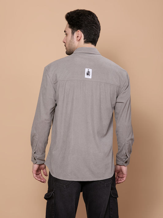 HangerLoop Relaxed Fit Classic Corduroy Shacket - Light Grey