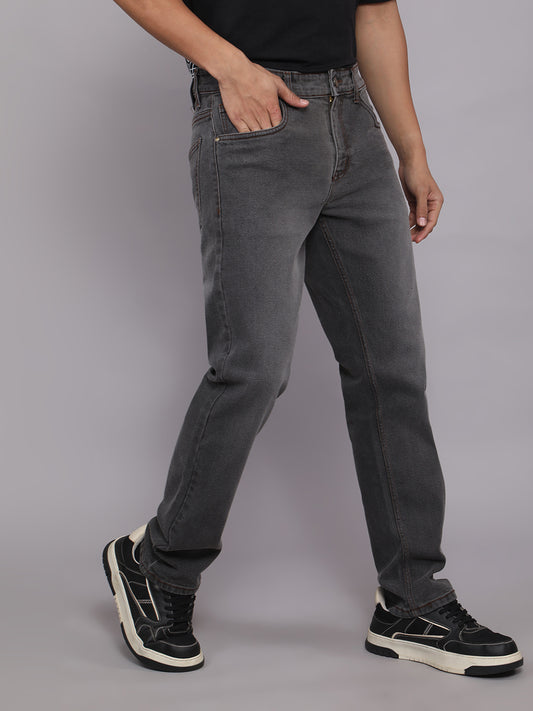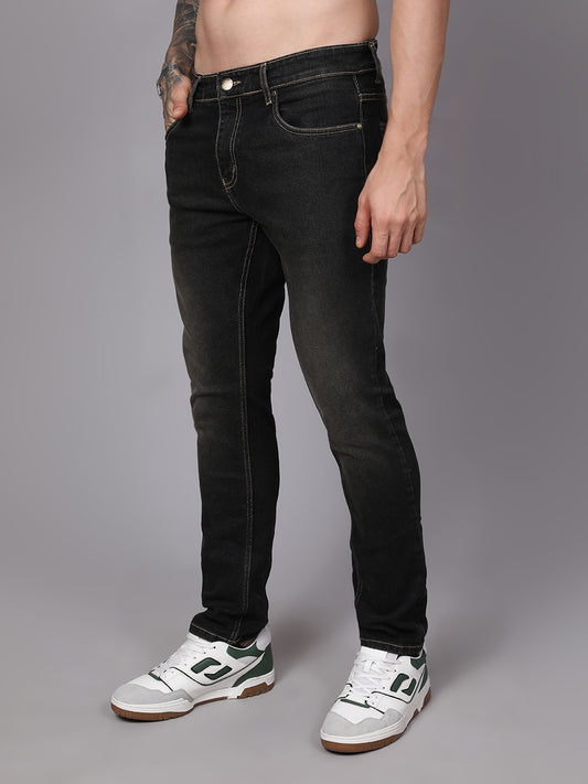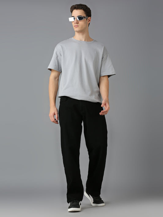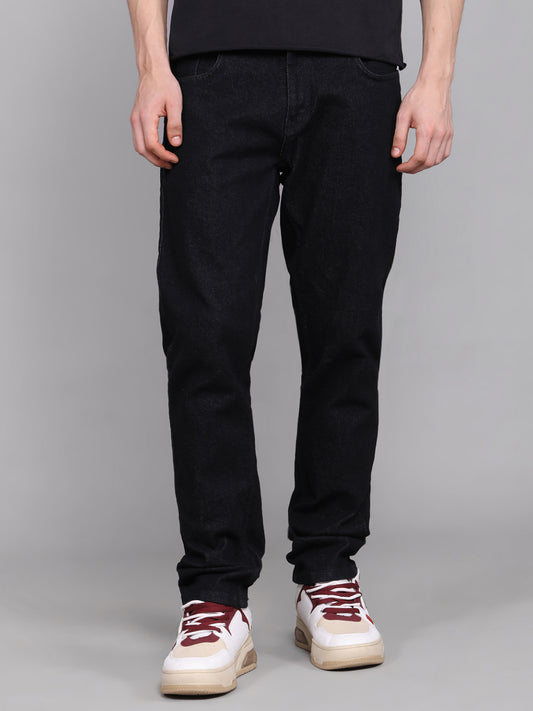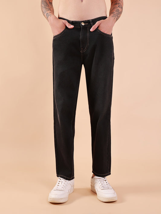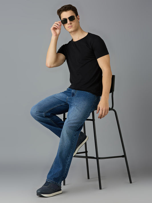 Men Casual Wear Straight Leg Jeans - Black 100% Cotton