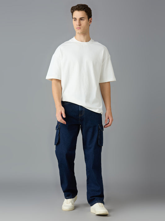 Men's Casual Wear Multi-pocket Regular Fit Navy Blue Cargo Jeans
