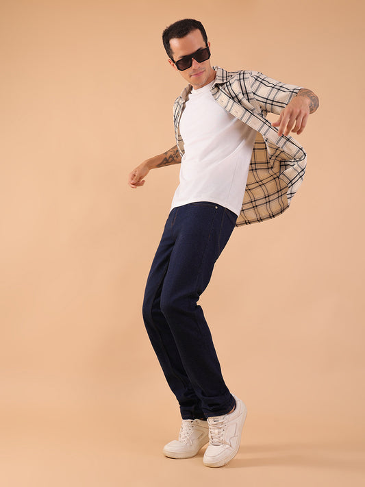 Men Light Fade Regular Fit Jeans - 100% Cotton, Navy Blue