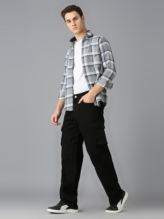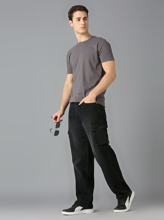 Men Stone wash Multi-pocket Cargo Jeans - Charcoal Black
