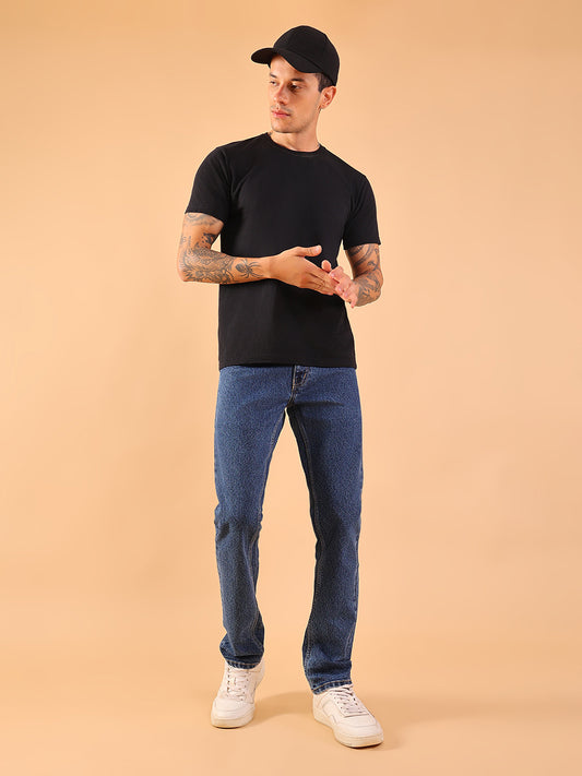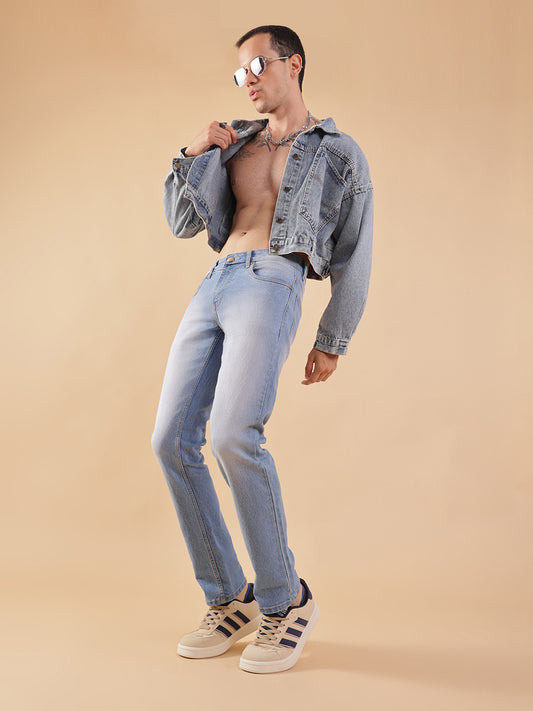 Men Regular Fit Light Fade Blue Cargo Jeans
