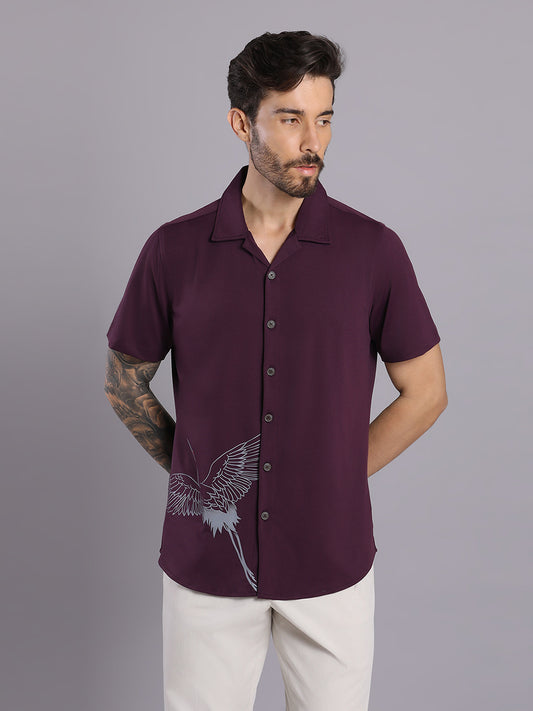 Opaque Printed Knitted Half Sleeve Shirt – Effortless Comfort & Style - Maroon