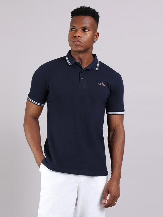 56% OFFDeep Navy Cotton Polo T-Shirt