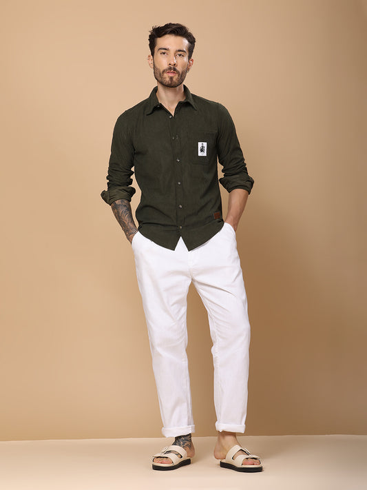 Men’s Corduroy Shirt – Regular Fit, Full Sleeve, Vintage 90’s Style - Olive