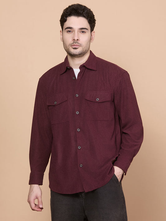 HangerLoop Relaxed Fit Classic Corduroy Shacket - Wine
