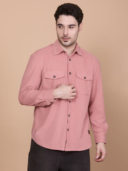 Relaxed Fit Half Sleeve Classic Corduroy Shirt - Peach