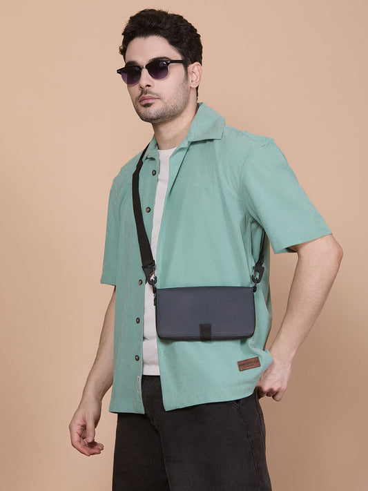Relaxed Fit Half Sleeve Classic Corduroy Shirt - Green