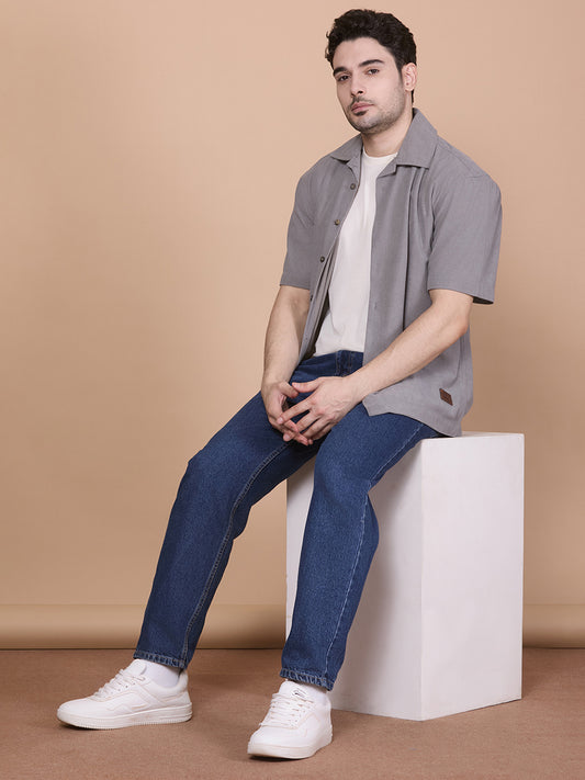 Relaxed Fit Half Sleeve Classic Corduroy Shirt - Light Grey