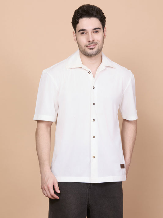 Relaxed Fit Half Sleeve Classic Corduroy Shirt - White