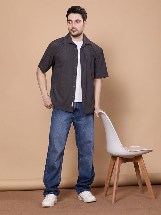 Relaxed Fit Half Sleeve Classic Corduroy Shirt - Dark Grey