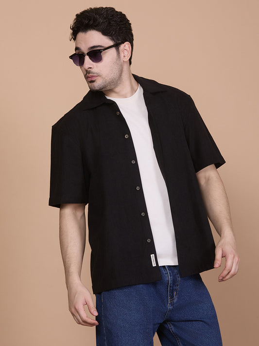 Relaxed Fit Half Sleeve Classic Corduroy Shirt - Black