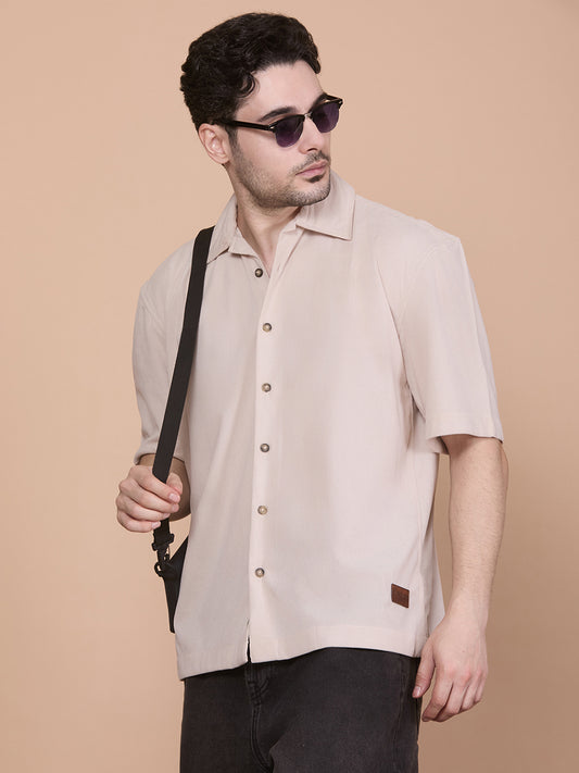 Relaxed Fit Half Sleeve Classic Corduroy Shirt - Beige