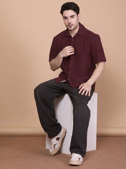 Relaxed Fit Half Sleeve Classic Corduroy Shirt - Wine